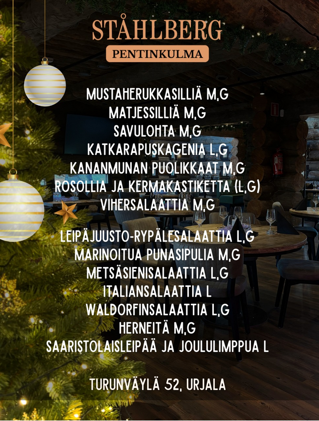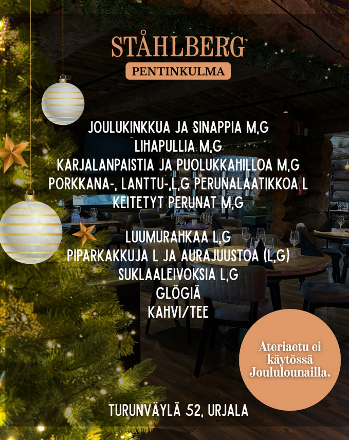 Pikkujoulu viikolla 49, perjantai 5.12.2025 Pentinkulmassa. Jouluruokailu, hinta jäsenille 30 €. Viimeinen ilmoittautumispäivä 31.10.2025, eräpäivä 21.11.2025,HUOM ! ei matka vaan yhdistyksen tilille FI82 5488 8840 0147 43 ,viitenumerolla 1656.